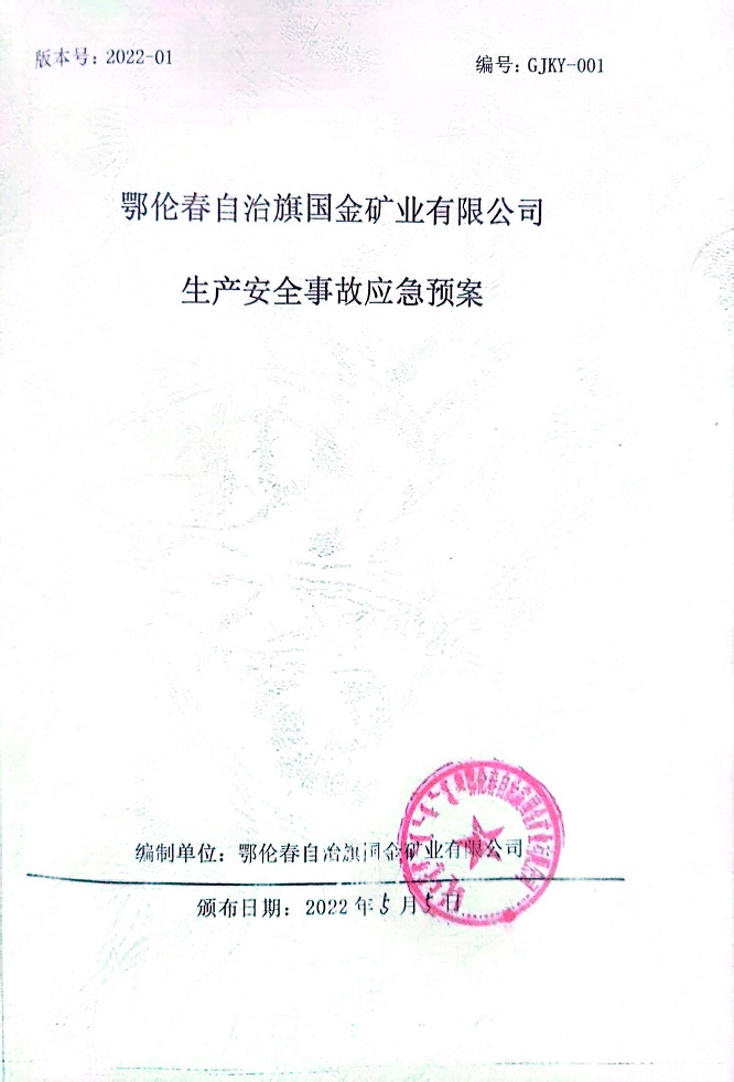 鄂倫春自治旗國金礦業有限公司生產安全事故應急預案